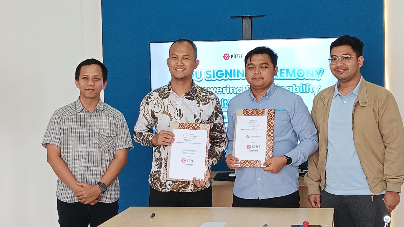 Jakarta, TopBusiness – Dalam upaya mempercepat transformasi Sustainability dengan teknologi, Olahkarsa dan Kazee Digital Indonesia resmi menandatangani Memorandum of Understanding (MoU) dalam sebuah seremoni yang berlangsung di Head Quarters Olahkarsa, Bandung.