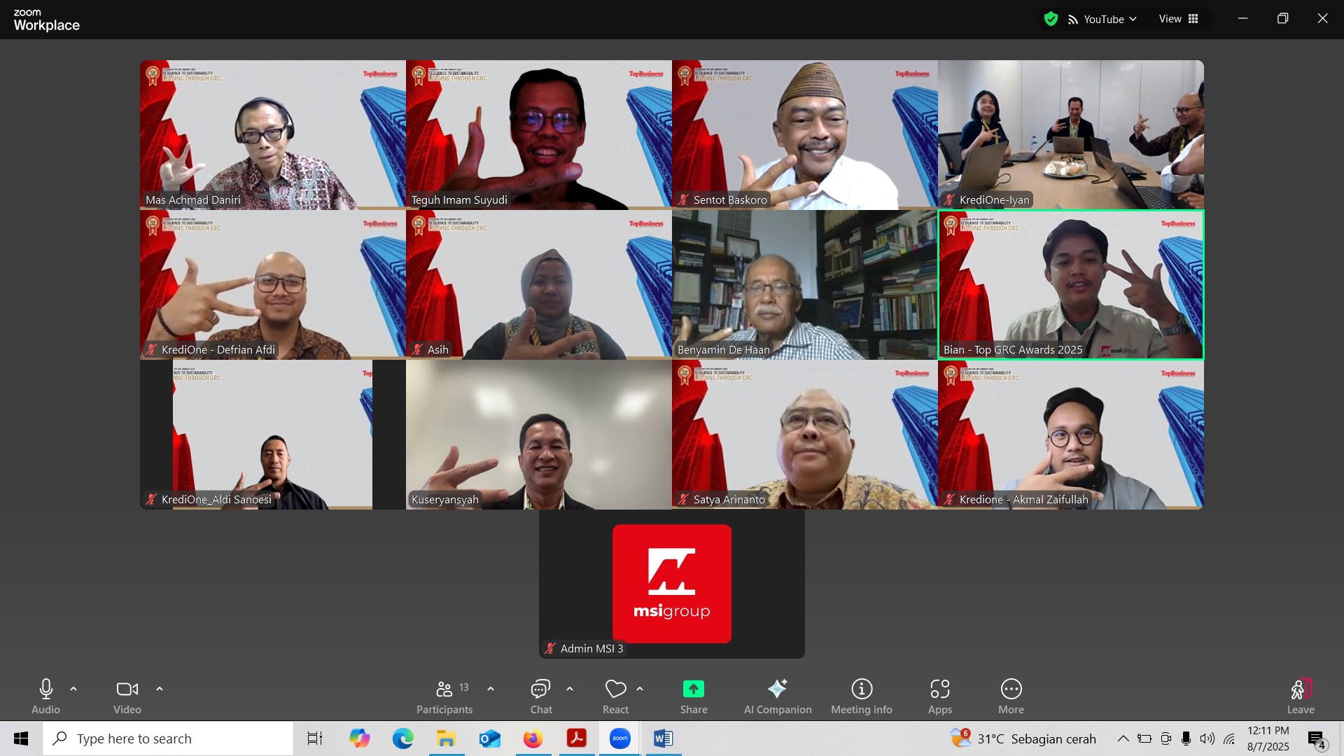 KrediOne telah mengikuti sesi Wawancara Penjurian TOP GRC Awards 2025, secara online, Kamis, 7/08/2025. Kuseryansyah, Direktur Utama memaparkan sejumlah keberhasilan terkait penerapan GRC di KrediOne dalam 1-2 terakhir.