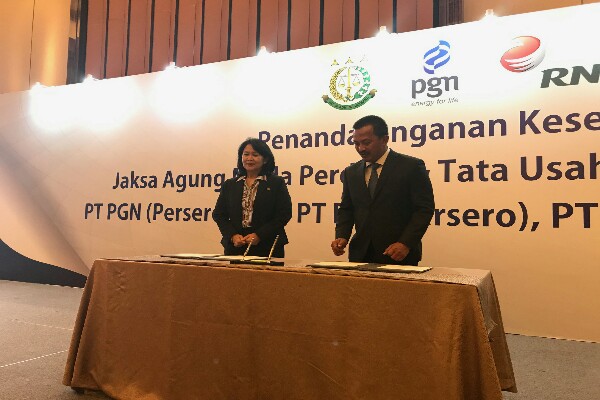 Penandatanganan dilakukan oleh masing-masing direktur utama BUMN tersebut dengan Jamdatun. Hadir pada acara tersebut, Direktur Utama PT Perusahaan Gas Negara (Persero) Tbk., Jobi Triananda Hasjim, Direktur Utama PT Rajawali Nusantara Indonesia (Persero) B Didik Prasetyo, dan Direktur Utama PT TASPEN (Persero) Iqbal Latanro.