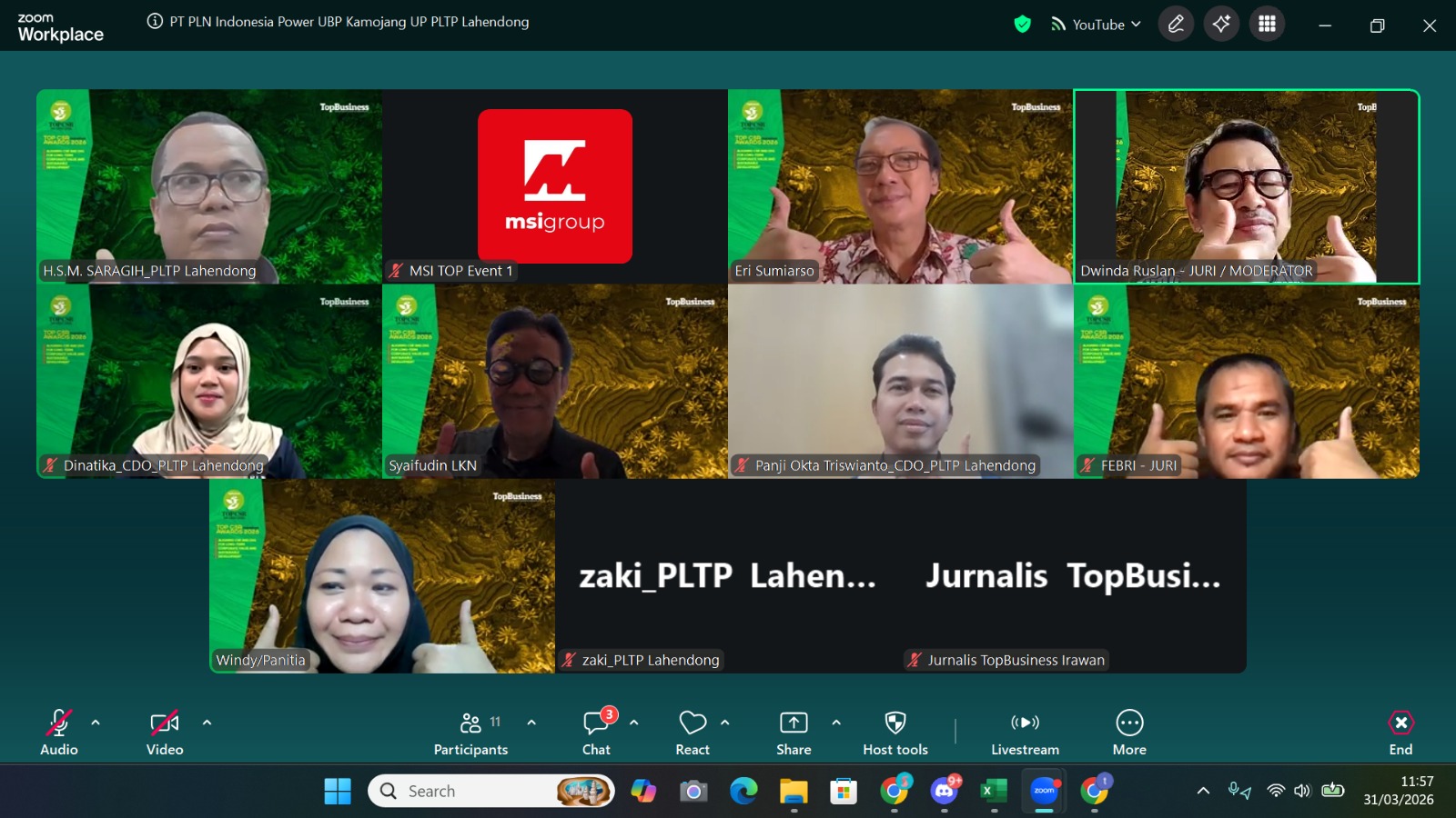 Jakarta, TopBusiness — PT PLN Indonesia Power (IP) Unit Pembangkitan (UP) PLTP Lahendong terpilih menjadi nominator TOP CSR Awards 2026. Sebagai perusahaan yang merupakan bagian dari PLN Group yang bergerak sebagai penyedia solusi energi, khususnya melalui pembangkitan tenaga listrik berbasis energi panas bumi ini, baru saja mengikuti sesi presentasi Penjurian TOP CSR Awards 2026, Selasa (31/3/2026).