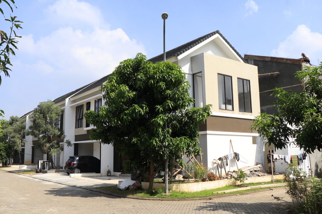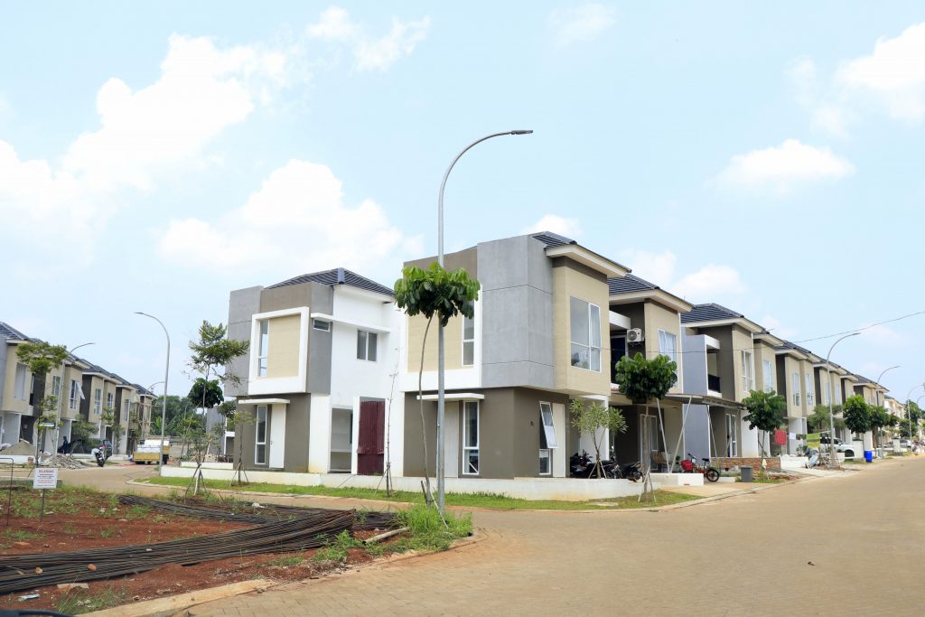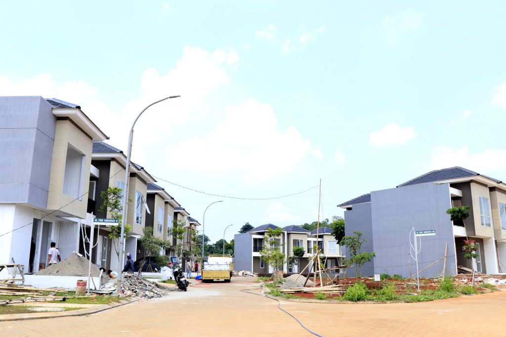 Aktivitas pembangunan perumahan Serpong Jaya, Tangerang Selatan di tengah pandemi Covid-19, Jumat (17/4/2020).