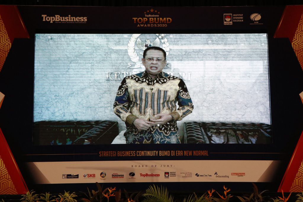 Ajang penganugerahan penghargaan BUMD terbesar dan paling bergengsi di Tanah Air, TOP BUMD Awards 2020, berlangsung di Golden Ballroom – The Sultan Hotel Jakarta. TOP BUMD Awards 2020, Kamis (27/8/2020).