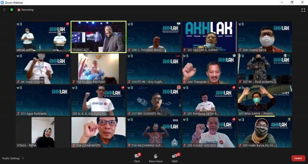 Acara perluncuran Core Values AKHLAK tersebut di inisiasi oleh PT Adhi Karya (Persero) Tbk, pada awal Oktober (2/10/20) yang dilakukan secara virtual melalui Aplikasi Zoom dan disiarkan langsung melalui kanal live streaming Youtube.