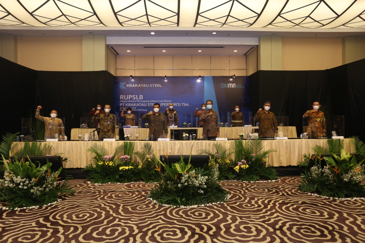 PT Krakatau Steel (Persero) Tbk melaksanakan RUPSLB (Rapat Umum Pemegang  Saham Luar Biasa) pada Selasa, 24 November 2020 di Jakarta. RUPSLB yang terdiri dari dua mata acara yaitu permohonan persetujuan penerbitan obligasi wajib konversi sebesar Rp 3 triliun melalui mekanisme  Penambahan Modal Tanpa Hak Memesan Efek Terlebih Dahulu (PMTHMETD) dalam rangka  melaksanakan amanat Pemerintah Republik Indonesia sehubungan Investasi Pemerintah Dalam Rangka Program Pemulihan Ekonomi Nasional yang terdampak akibat Pandemi Covid-19 sebagaimana diatur dalam Undang-Undang Nomor 2 Tahun 2020 dan Peraturan Pemerintah Nomor 23 Tahun 2020, serta Peraturan  Menteri Keuangan Republik Indonesia Nomor 118/PMK.06/2020. Bersamaan dengan mata acara tersebut  diatas RUPSLB juga mengagendakan perihal perubahan Pengurus Perseroan.