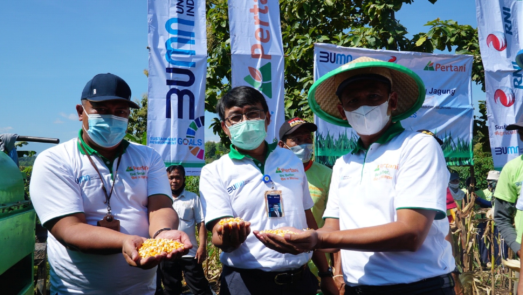 Direktur Utama PT Pertani (Persero) juga mengatakan prinsip sistem corporate farming jagung yang dilaksanakan di madiun ini merupakan upaya BUMN untuk Indonesia dalam menjaga kedaulatan pangan melalui kesejahteraan petani dengan cara jaminan opkup dengan harga yang stabil.
