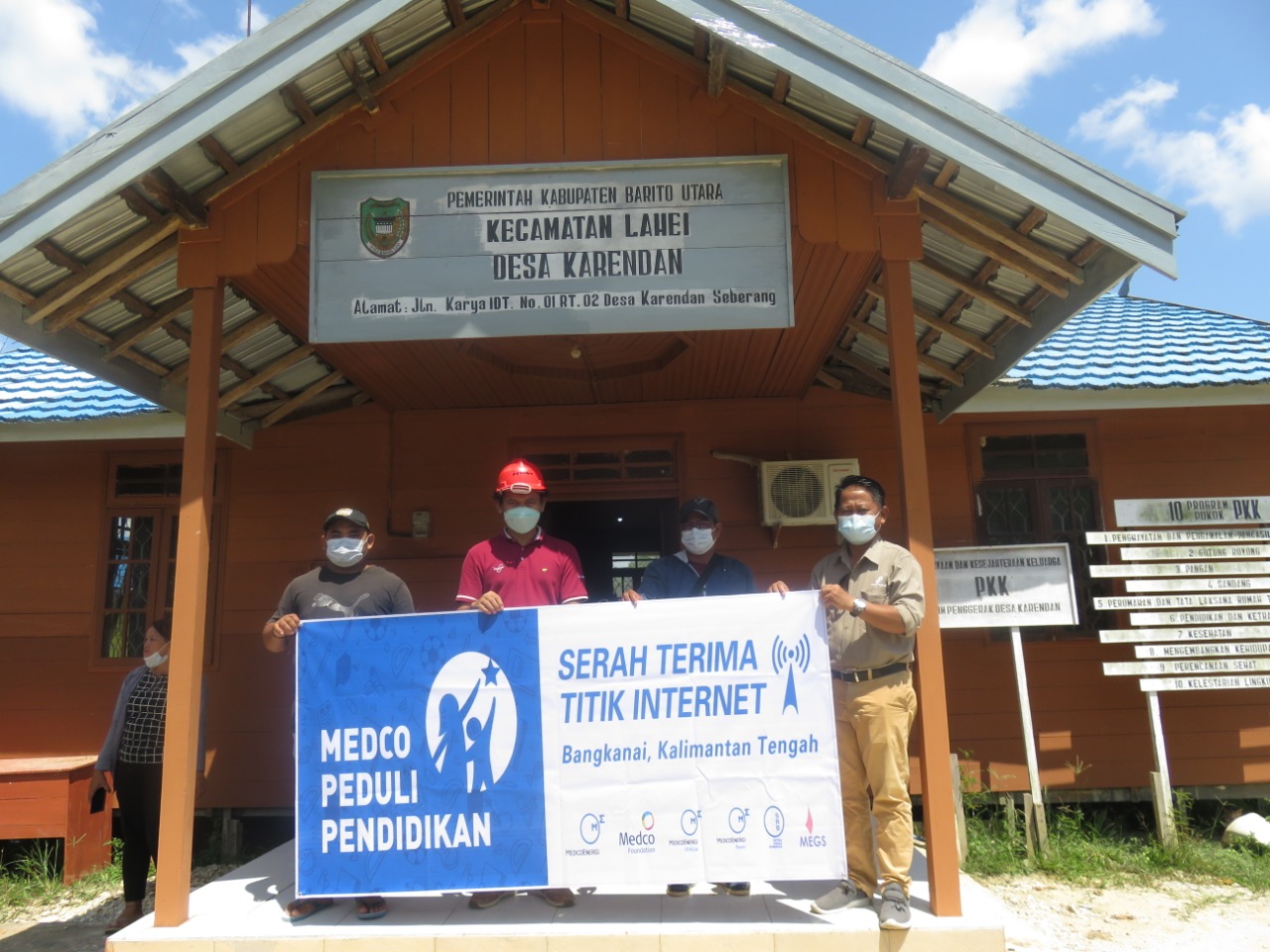 Selama ini, karena belum ada jaringan internet, para siswa di desa tersebut terpaksa harus menumpang internet milik sebuah perusahaan yang beroperasi di sana. Oleh karena itu, Medco akan membangun jaringan internet di tiga titik, yaitu Kantor Desa, Sekolah Dasar Negeri Karendan, dan di tengah pemukiman penduduk. Bantuan yang merupakan bagian dari ‘Gerakan Medco Peduli Pendidikan’ ini diserahkan oleh Lead PASEC & General Services Medco Energi Bangkani Limited, Muhammad Idrus, sebagai perwakilan Medco kepada Kepala Desa Karendan Ricy di Kantor Desa Karendan, Sabtu (24/4).