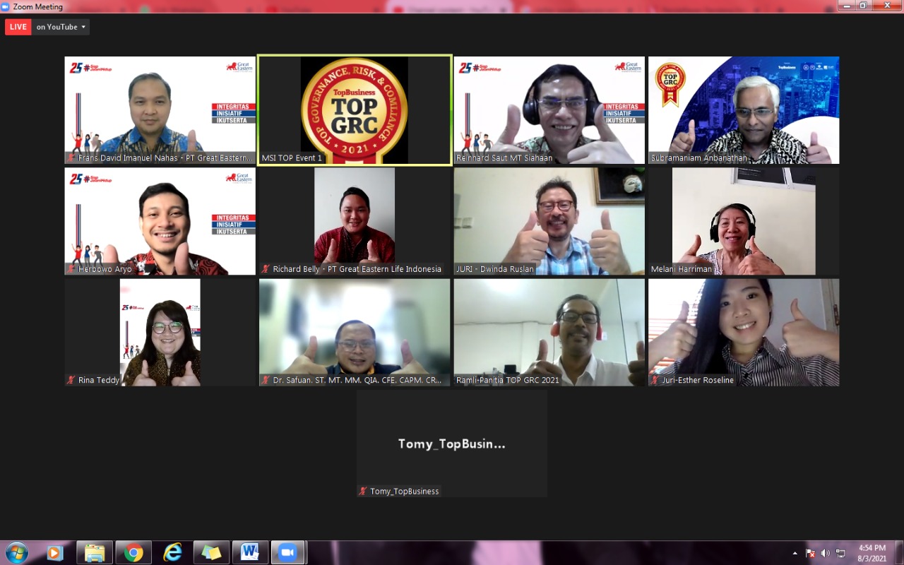 “Jadi perusahaan terus beradaptasi dengan adanya pandemi ini. Sebab di masa Covid-19 itu, bisnis mencatatkan pertumbuhan fluktuatif, di mana pada Semester I 2020 pertumbuhan negatif 39% dibandingkan dengan tahun sebelumnya,” tutur Reinhard Siahaan, bagian Compliance Great Eastern Life Indonesia, dalam paparannya saat penjurian Top GRC Awards 2021 yang digelar secara virtual oleh Majalah TopBusiness, Selasa (3/8/2021).