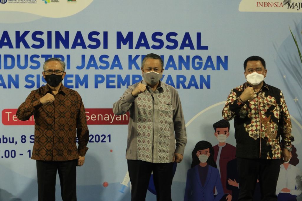Gubernur BI, Perry Warjiyo, Ketua Dewan Komisioner OJK, Wimboh Santoso, bersama Dirjen Pencegahan dan Pengendalian Penyakit Kemenkes, Maxi Rein Rondonuwu, melakukan peninjauan pelaksanaan kegiatan vaksinasi Covid-19 dosis kedua tersebut.