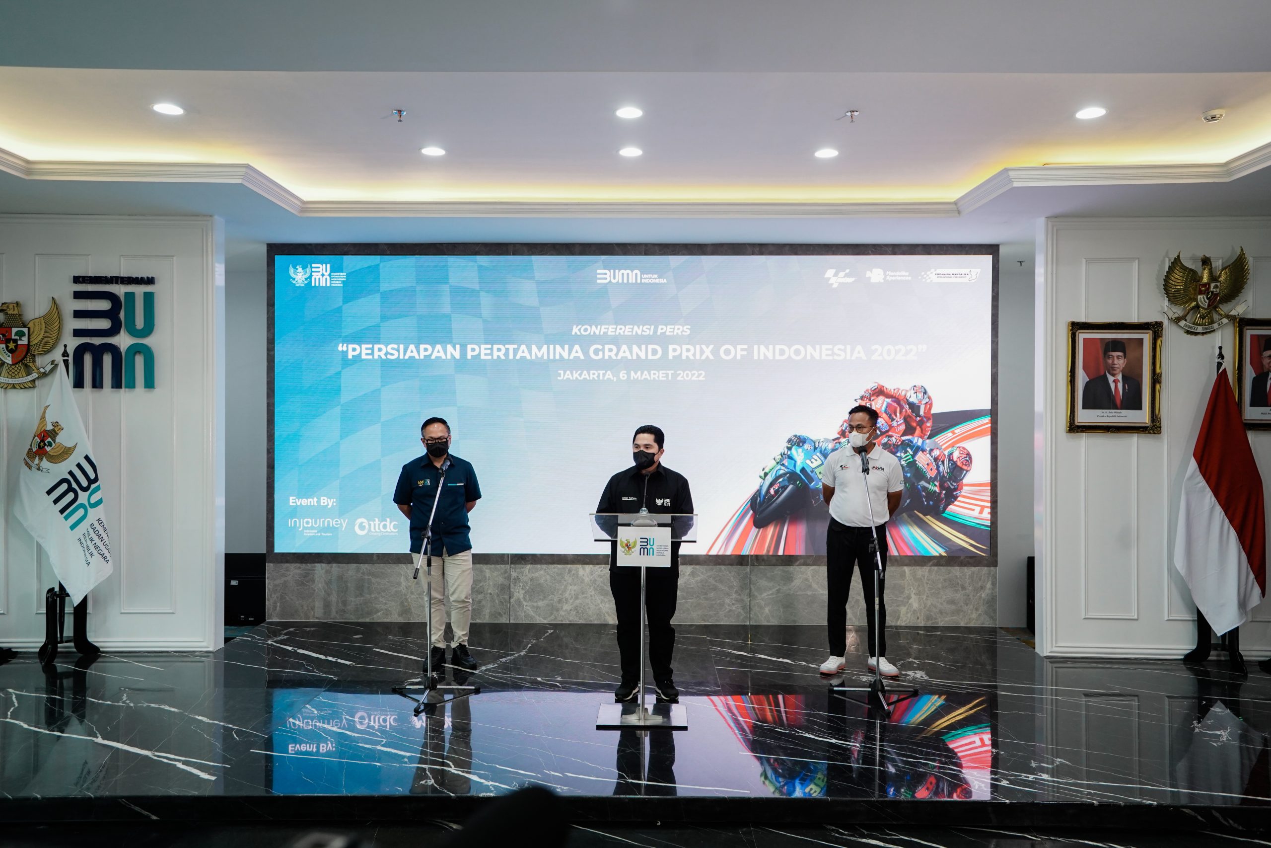 Erick menyampaikan, MotoGP 2022 Seri Pertamina Grand Prix of Indonesia merupakan gelaran internasional yang harus didukung seluruh masyarakat Indonesia dan NTB, karena ini merupakan tonggak sejarah bagi kita semua. “Sejak awal saya secara reguler memonitor persiapannya sesuai arahan Bapak Presiden Joko Widodo (Jokowi), apalagi ada kolaborasi BUMN yang erat di acara akbar ini,” ungkap Erick dalam keterangan resminya.
