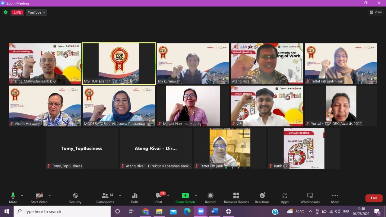 Pernyataan tersebut disampaikan oleh Ateng Rivai selaku Direktur Kepatuhan Bank DKI, saat mengikuti proses penjurian Top GRC Awards 2022 yang digelar Majalah TopBusiness pada Jumat (1/7/2022) lalu secara virtual. Dalam gelaran Top GRC Awards 2022 ini, TopBusiness menggandeng banyak lembaga professional di bidang GRC selaku tim dewan juri.