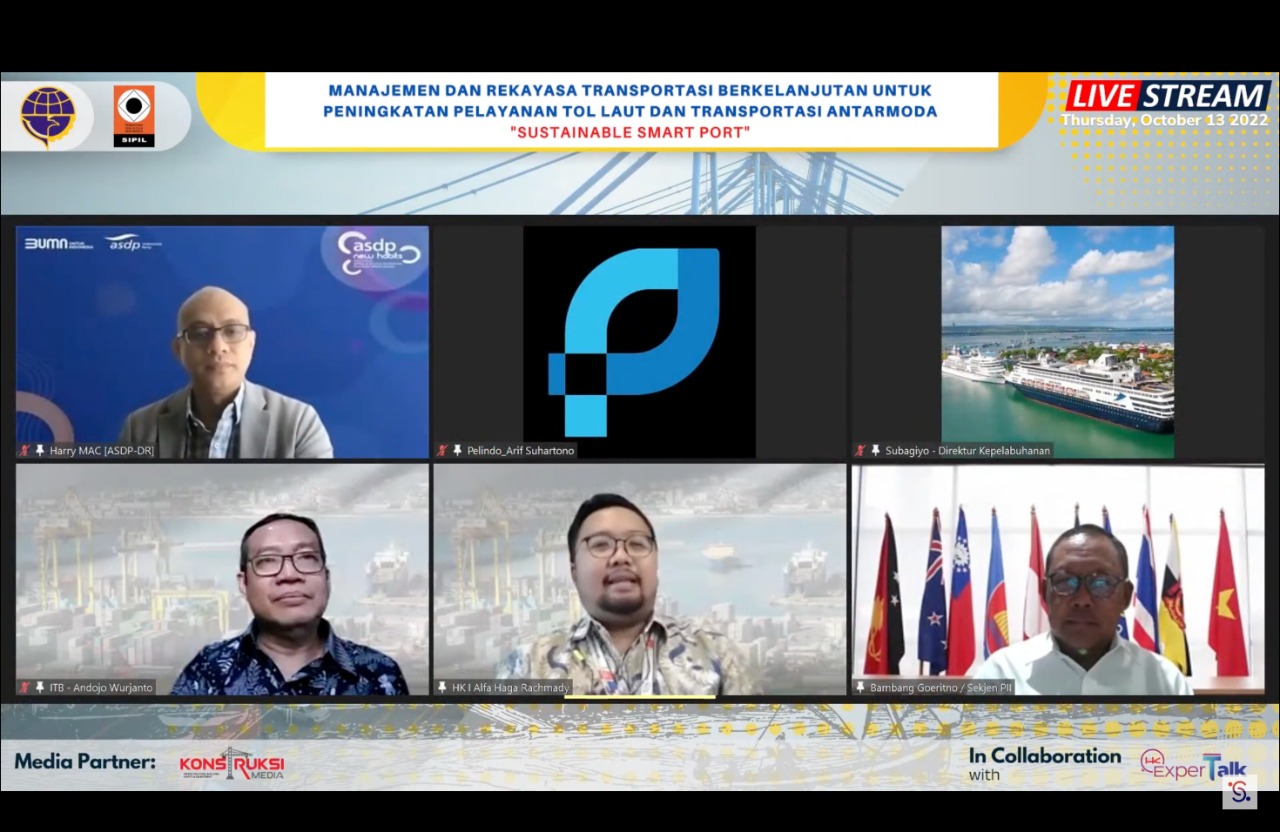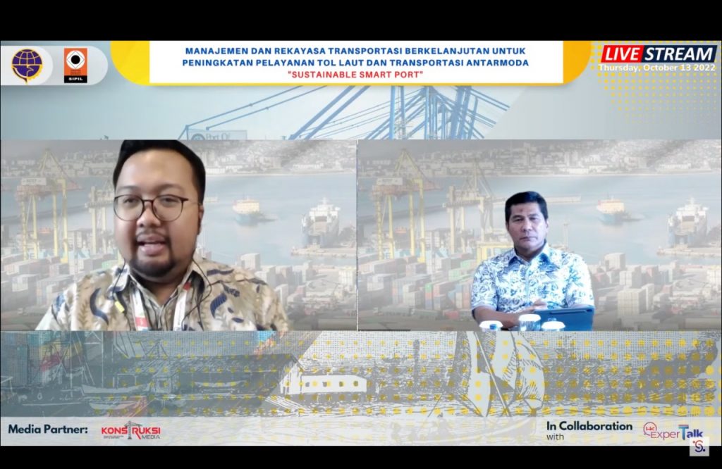 Pada Kamis (13/10), serial webinar pra kegiatan kedua bertajuk Manajemen dan Rekayasa  Transportasi Berkelanjutan untuk Peningkatan Logistik “Sustainable Smart Port” dibuka oleh Prof. Dr. Ir. Agus Taufik Mulyono, MT., IPU., ASEAN.Eng. selaku Ketua Dewan Pengarah  Seminar Nasional sekaligus dan dihadiri oleh 4 narasumber yaitu Ir. Subagiyo, MT (Direktur Kepelabuhan, Kementerian Perhubungan), Ir. Andojo Wurjanto, MCE, Ph.D. (Dosen Institut Teknologi Bandung), Harry MAC (Direktur Perencanaan dan Pengembangan PT ASDP Indonesia Ferry (Persero)) dan Arif Suhartono (Direktur Utama PT Pelabuhan Indonesia (Persero) dengan topik pembahasan seputar manajemen dan penerapan Smart Transportation di matra laut.