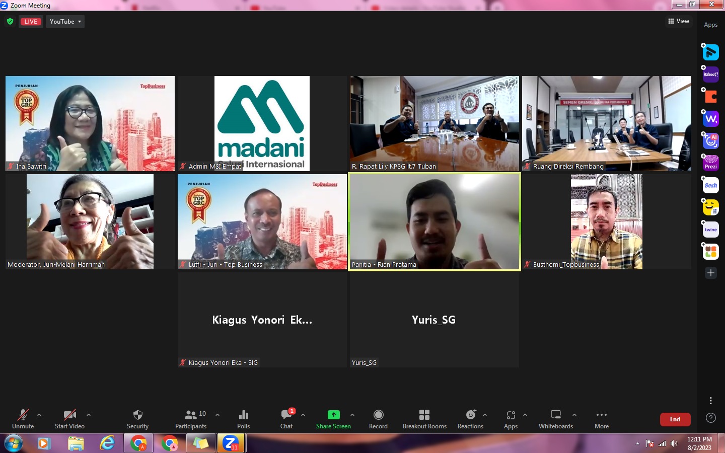 Hadir dalam penjurian ini mendampingi Muchamad Supriyadi adalah, Benny Ismanto selaku Direktur Operasi, Ahmad Jibril sebagai Plt Kepala Departemen Komunikasi & Legal (Sekper), Kiagus Yonori Eka GRC Officer, dan Yuris Rivian Ardani Legal Officer.